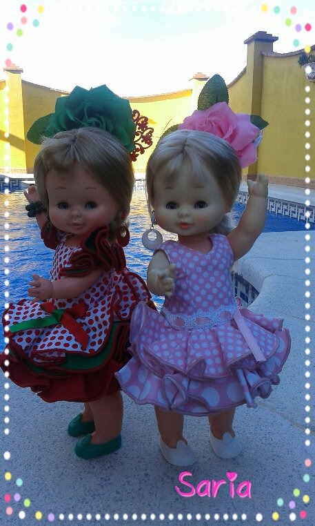Anoche comenzó la feria en mi preciosa Málaga,cuando mi niña era más pequeña me encantaba vestirla de flamenca,pero ya al hacerse más mayor como que pasa un poco y no quiere,así que no me queda más remedio que vestir a mis Lolitas je,je.Los vestidos fue un regalo de mi amiga María Dólores López,que es una artista con la aguja,desde aquí quiero agradecerte este detalle tan bonito que tuviste conmigo,eres un cielo.Bueno pues aquí os dejo a mis dos bombones,ainss es que no se puede ser más bonitas.